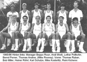 In derselben Saison gelang unserer Damenmannschaft unter dem neuen Trainer Bob Miller der Aufstieg in die Regionalliga, die damals noch die zweithöchste Spielklasse war. Somit waren also Damen und Herren gemeinsam zweitklassig. Sowohl bei Armin Andres als auch bei Bob Miller war ein erstaunlicher Zuwachs im weiblichen Spielerkader und eine ungewöhnlich hohe Trainingsfrequenz zu verzeichnen. Der Grund war ganz einfach: sämtliche Damen schwärmten für ihre Trainer!